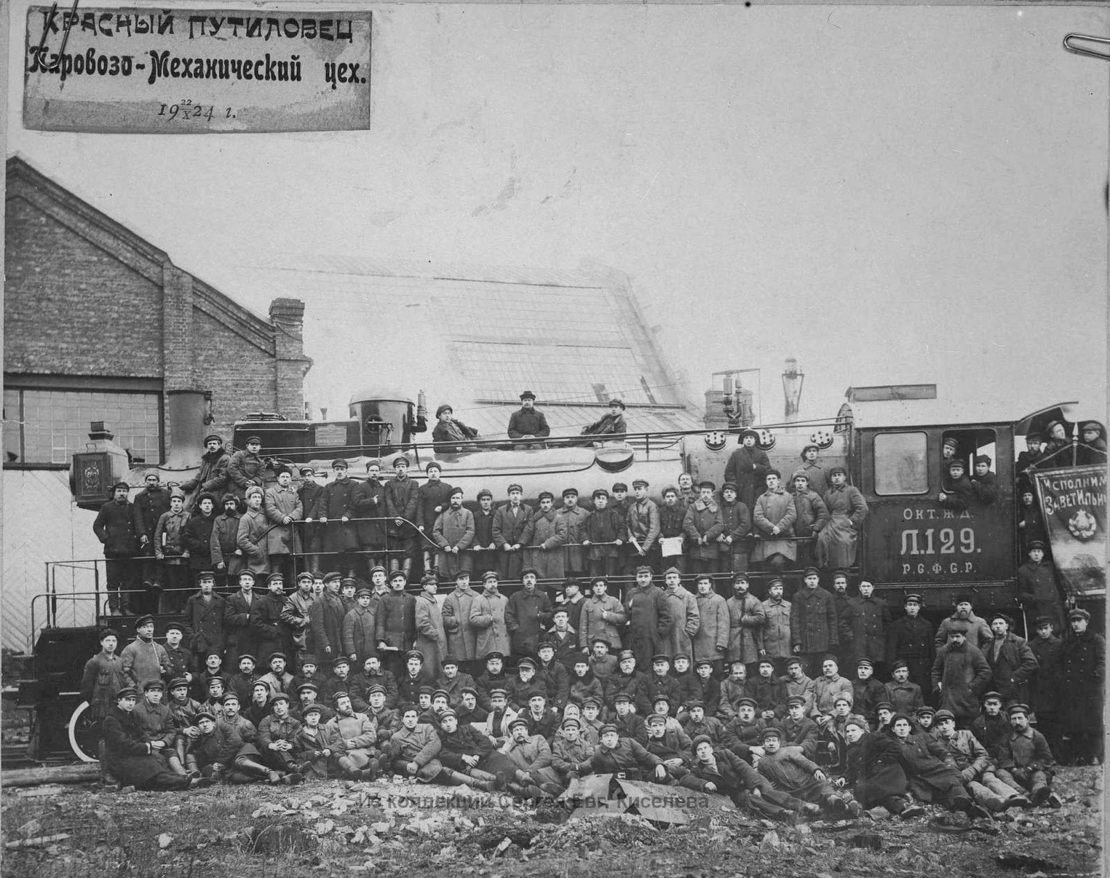 "Работники завода "Красный путиловец" у паровоза Л.129 (Лп)"