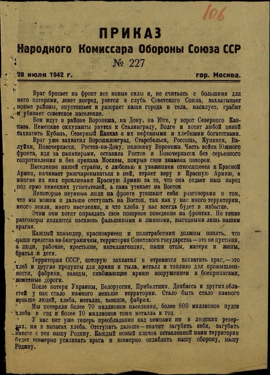 Приказ №227 от 28 июля 1942 г. Ни шагу назад!"