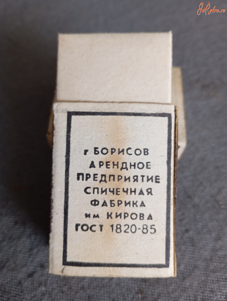 Описание старой фотографии: Обычные спички,выпущенные в г.Борисов (БССР) в 1985 году.