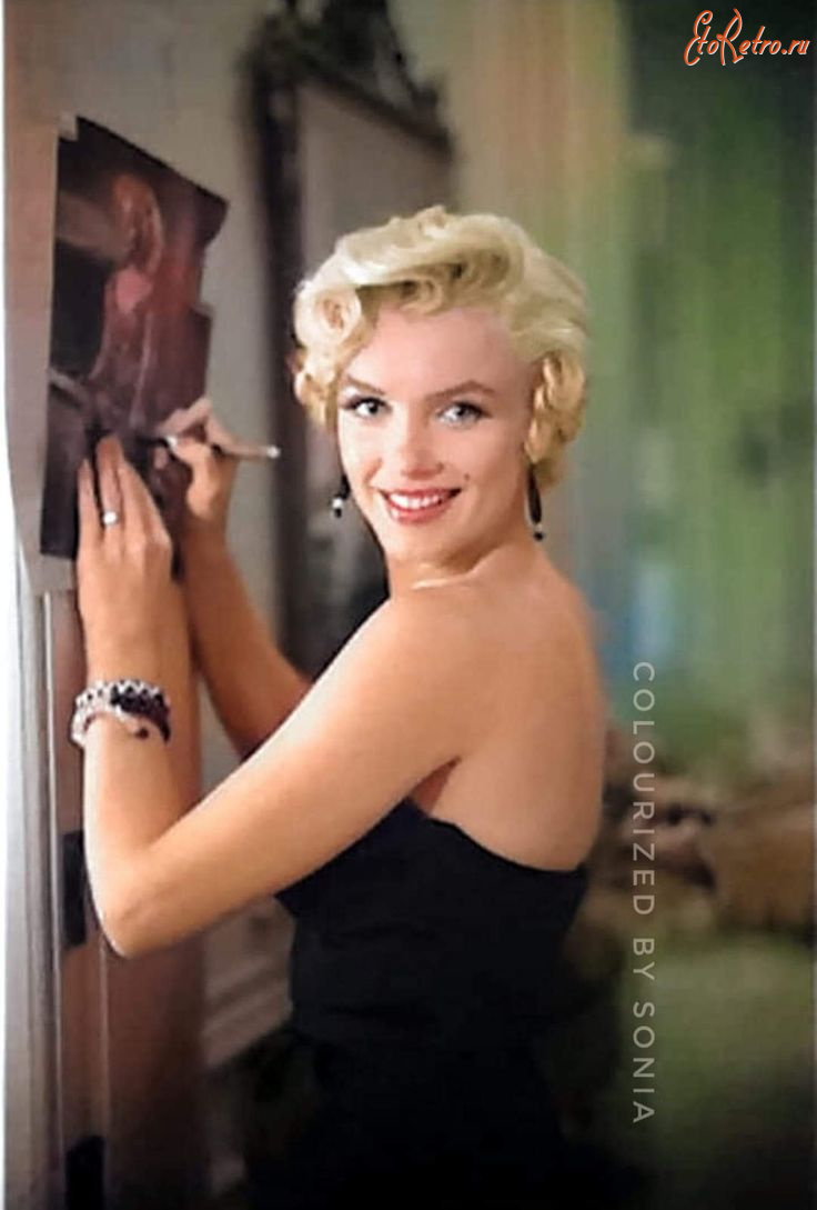 Описание старой фотографии: "Женщина-легенда Мерилин Монро"-американская киноактриса,модель, певица,секс-символ 1950-х годов.