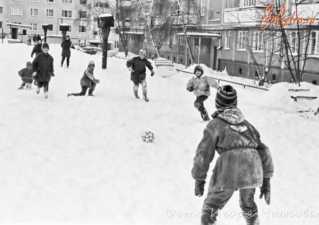 Описание старой фотографии: Футбол на снегу