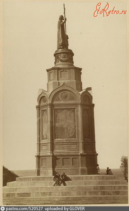 Описание старой фотографии: Киев. Памятник князю Владимиру.