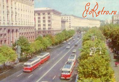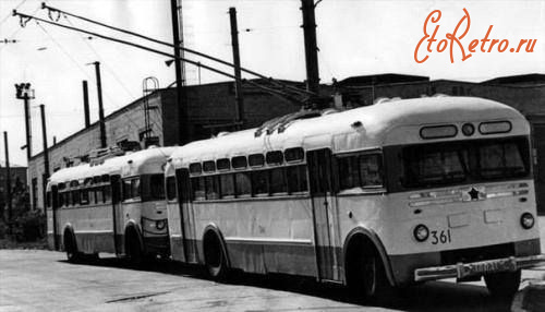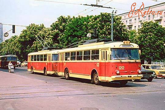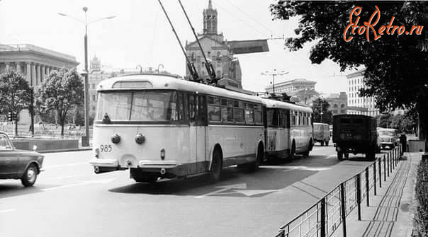 Описание старой фотографии: Київ. Тралейбусний поїзд.