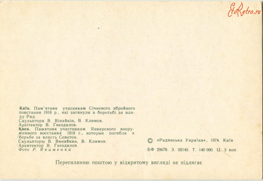 б) Если Вы нашли в разделе фотографии, которые были взяты, по Вашему мнению, с Вашего сайта, но без ссылки на Вас - просто напишите нам об этом на info@etoretro.ru - мы разместим ссылку на Вас в разделе "Киев". Подробнее >>