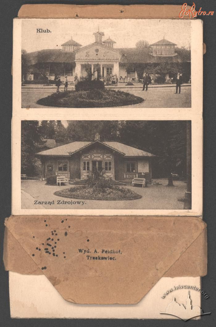 Описание старой фотографии: Пам"ятка з Трускавця. Види курорту.
