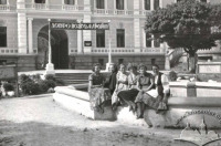 Описание старой фотографии: Сколе. Діти на відпочинку перед палацом.