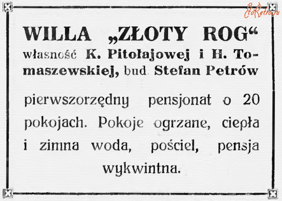 Описание старой фотографии: Трускавець. Вілла "Золотий Ріг".