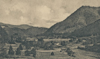 Описание старой фотографии: Тухля. Вид на річку та кладку.