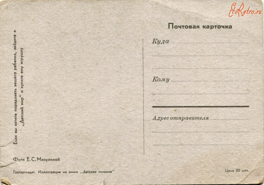 Отличная редкая открытка! Если можно, добавьте, пожалуйста, в слова для поиска е. микулина - открываются ещё несколько открыток фотографа.