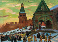 Описание старой фотографии: Картина. Холст, масло. 49,5х67 см. Художник Борис Кустодиев, Борис Михайлович Кустодиев, Кустодиев, 1878-1927, 1920. Аукцион искусств.