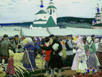 Описание старой фотографии: Картина. Холст, масло. 80х94 см. Художник Борис Кустодиев, Борис Михайлович Кустодиев, Кустодиев, 1878-1927. Аукцион искусств.