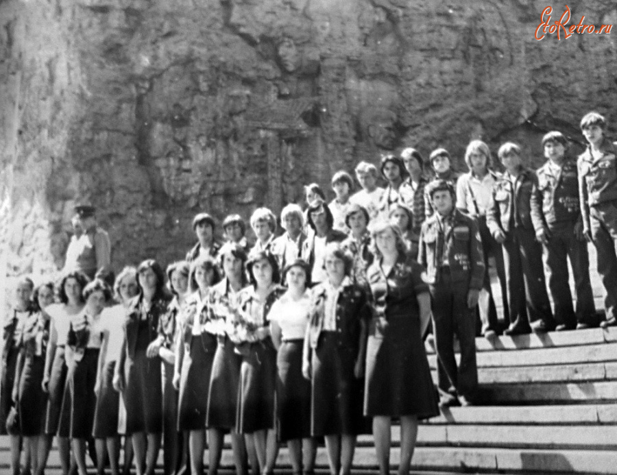 Описание старой фотографии: Стройотряд Озёрского техникум механизации сельского хозяйства. Калининградская обл.